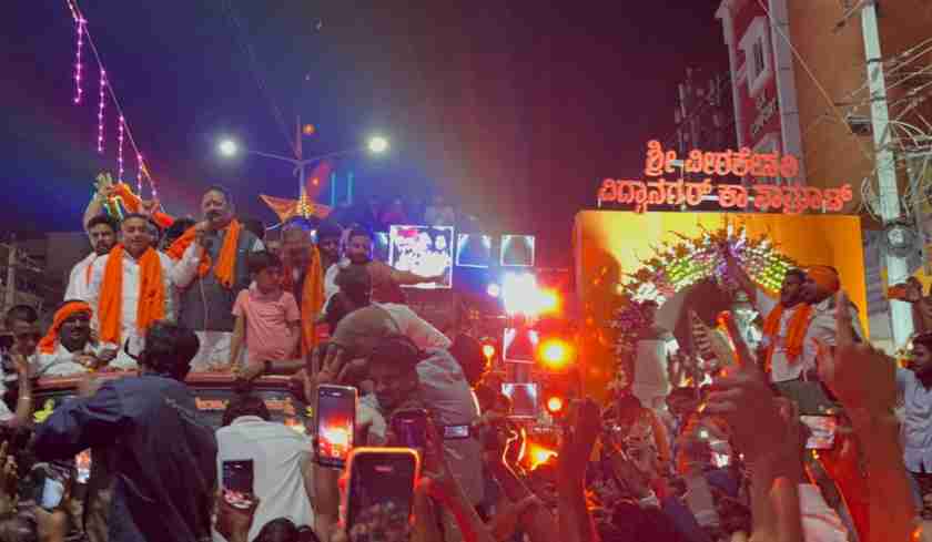 ಶಿವಮೊಗ್ಗ : ಶಿವಮೊಗ್ಗ ನಗರದ ವಿದ್ಯಾನಗರ ಭಾನು ಬೀದಿಯ ಶ್ರೀ ವೀರಕೇಸರಿ ವಿದ್ಯಾನಗರ್ ಕಾ ಸಾಮ್ರಾಟ್ ಗಣಪತಿ ವಿಸರ್ಜನಾ ಪೂರ್ವ ಮೆರವಣಿಗೆಯಲ್ಲಿ ಕರ್ನಾಟಕದ ಹಿಂದೂ ಫೈರ್ ಬ್ರಾಂಡ್ ಎಂದೇ ಹೆಸರಾದಂತಹ ಬಸವನಗೌಡ ಪಾಟೀಲ್ ಯತ್ನಾಳ್ ಭಾಗವಹಿಸಿದ್ದರು.
