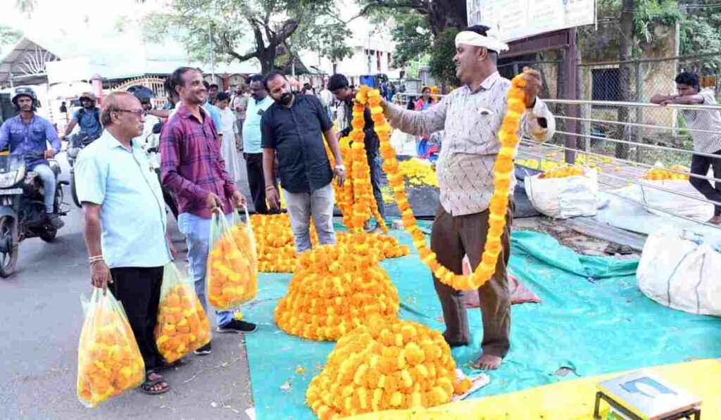 ವ್ಯಾಪಾರಿಗಳು ರಸ್ತೆ ಬದಿಯಲ್ಲಿ ತಳ್ಳುವ ಗಾಡಿಗಳಲ್ಲಿ ಹೂವು, ಹಣ್ಣು, ಬಾಳೆ ಕಂದು, ಮಾವಿನಸೊಪ್ಪು, ನಿಂಬೆ ಹಣ್ಣುಗಳ ರಾಶಿ ಹಾಕಿ ಮಾರಾಟ ಮಾಡುತ್ತಿದ್ದರು. ವಾಹನಗಳನ್ನು, ಅಂಗಡಿಗಳನ್ನು ಅಲಂಕರಿಸಲು ಬಳಸುವ ಕೃತಕ ಹಾರಗಳು ಇತರೆ ಅಲಂಕಾರಿಕ ವಸ್ತುಗಳನ್ನು ಮಾರಾಟ ಮಾಡುವವರ ಸಂಖ್ಯೆಯು ಹೆಚ್ಚಿದೆ.