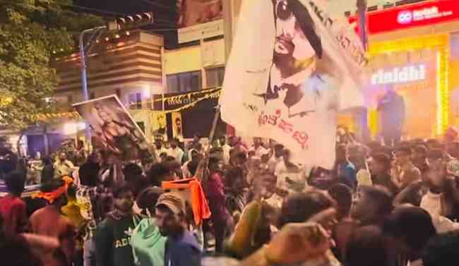 ನಾಳೆ ಸಿನಿಮಾ ಬಿಡುಗಡೆಯ ಹಿನ್ನೆಲೆ ಇಂದು ಸಂಜೆ ಶಿವಮೊಗ್ಗ ನಗರದಲ್ಲಿ ಕಿಚ್ಚನ ಶಿವಮೊಗ್ಗದ ಅಭಿಮಾನಿಗಳು ಆಯೋಜಿಸಿದ್ದ ಕಾರ್ಯಕ್ರಮದಲ್ಲಿ, ಕಿಚ್ಚ ಸುದೀಪ್ ಅವರು ವೀಡಿಯೋ ಕಾಲ್ ಮೂಲಕ ಅಭಿಮಾನಿಗಳಿಗೆ ಮಾತನಾಡಿಸಿದ್ದಾರೆ. ಪ್ರೀತಿಯಿಂದ ಸಿನಿಮಾ ನೋಡುವಂತೆ ಕರೆ ನೀಡಿದ್ದಾರೆ. ಶಿವಮೊಗ್ಗದಲ್ಲಿ ಕಿಚ್ಚನ ಮಾರ್ಕ್ ಸಿನಿಮಾ ಬಿಡುಗಡೆಯ ಅಬ್ಬರ ಸಂಭ್ರಮದ ವಾತಾವರಣವನ್ನು ಸೃಷ್ಟಿಸಿದೆ.