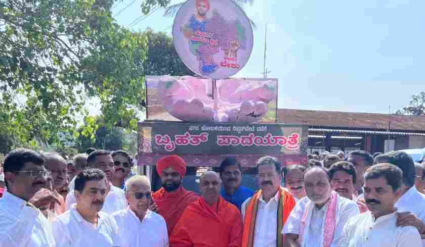 ನಗರದ ಚಿಕ್ಕಪೇಟೆಯಲ್ಲಿರುವ ಶ್ರೀ ಮಹಾ ಗಣಪತಿ ದೇವಾಲಯದಲ್ಲಿ ಪೂಜೆ ಸಲ್ಲಿಸಿ, ಪಾದಯಾತ್ರೆಗೆ ಚಾಲನೆ ನೀಡಲಾಯಿತು. ಹೊಸನಗರದ ಮೂಲಗದ್ದೆ ಮಠದ ಅಭಿನವ ಶ್ರೀ ಚನ್ನಬಸವ ಸ್ವಾಮೀಜಿಗಳ ನೇತೃತ್ವದಲ್ಲಿ ನಿಟ್ಟೂರು ಮಠದ ಶ್ರೀ ರೇಣುಕಾನಂದ ಸ್ವಾಮೀಜಿ, ಮಾಜಿ ಶಾಸಕರಾದ ಬಿ.ಸ್ವಾಮಿರಾವ್, ಜಿ.ಪಂ. ಮಾಜಿ ಅಧ್ಯಕ್ಷರು, ಕಾಂಗ್ರೆಸ್ ಮುಖಂಡರಾದ ಕಲಗೋಡು ರತ್ನಾಕರ್, ಶಾಸಕರುಗಳಾದ ಬೇಳೂರು ಗೋಪಾಲಕೃಷ್ಣ, ಆರಗ ಜ್ಞಾನೇಂದ್ರ, ಮಾಜಿ ಸಚಿವ ಹರತಾಳು ಹಾಲಪ್ಪ, ಕಿಮ್ಮನೆ ರತ್ನಾಕರ್, ಡಿಸಿಸಿ ಬ್ಯಾಂಕ್ ಅಧ್ಯಕ್ಷ ಆರ್.ಎಂ.ಮಂಜುನಾಥ್ ಗೌಡ, ಶಿಮುಲ್ ಅಧ್ಯಕ್ಷ ವಿದ್ಯಾಧರ್ ಸೇರಿದಂತೆ ಹಲವಾರು ಮುಖಂಡರು ಪಕ್ಷಬೇದ ಮರೆತು ಉರಿ ಬಿಸಿನಲ್ಲಿ ಹೆಜ್ಜೆ ಹಾಕಿದರು.
