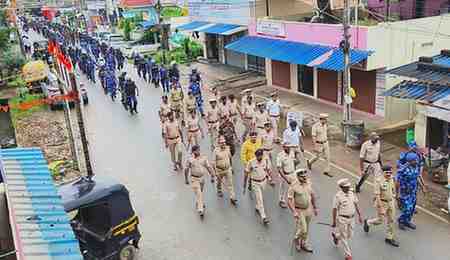 ಶಿವಮೊಗ್ಗ : ಗೌರಿ ಗಣೇಶ ಹಬ್ಬ ಹಾಗೂ ಈದ್ ಮಿಲಾದ್ ಹಬ್ಬಗಳ ಸಂಬಂಧ ಕಾನೂನು ಸುವ್ಯವಸ್ಥೆ ಹಿತ ದೃಷ್ಟಿಯಿಂದ ಇಂದು ಶಿವಮೊಗ್ಗ ನಗರದ ರಾಗಿಗುಡ್ಡ ಮತ್ತು ಸೂಳೆಬೈಲಿನಲ್ಲಿ ಪೊಲೀಸ್ ಪಥ ಸಂಚಲನವನ್ನು (ರೂಟ್ ಮಾರ್ಚ್) ನಡೆಸಲಾಯಿತು.