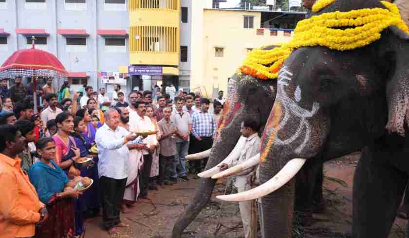 ಇಂದು ಸಂಜೆ ಸಕ್ರೆಬೈಲು ಆನೆ ಬಿಡಾರದಿಂದ, ಅರಣ್ಯ ಮತ್ತು ವನ್ಯಜೀವಿ ಇಲಾಖೆಯ ವತಿಯಿಂದ ಶಿವಮೊಗ್ಗ ದಸರಾ ಅಂಬಾರಿ ಉತ್ಸವದಲ್ಲಿ ಪಾಲ್ಗೊಳ್ಳುವ ಸಾಗರ್, ಬಹದ್ದೂರ್ ಮತ್ತು ಬಾಲಣ್ಣ ಆನೆಗಳಿಗೆ ಪೂಜೆ ಸಲ್ಲಿಸಿ, ಮಂಗಳವಾದ್ಯ ಸಹಿತ ಆನೆಗಳನ್ನು ನಗರಕ್ಕೆ ಸ್ವಾಗತಿಸಲಾಯಿತು. ಕೋಟೆ ಶ್ರೀ ಸೀತಾರಾಮಾಂಜನೇಯ ಸ್ವಾಮಿ ದೇಗುಲದಿಂದ ಹಾಗೂ ಶಿವಮೊಗ್ಗ ನಗರ ಶಾಸಕರಾದ ಎಸ್.ಎನ್.ಚನ್ನಬಸಪ್ಪ ರವರು ಪೂಜೆ ಸಲ್ಲಿಸಿದರು.